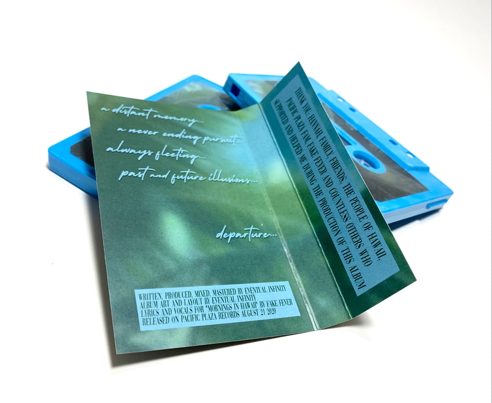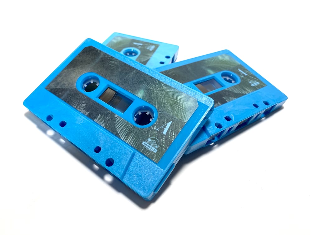 Sky Blue cassette shells with full color labels, packaged in clear norelco cases with double-sided jcards, printed on cardstock. Tapes duplicated by Duplicaton.CA in Canada.
